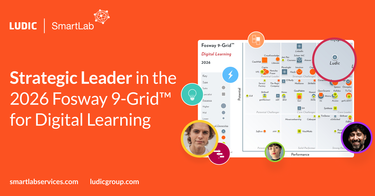London, March 2026 – Ludic and SmartLab have once again been named a Strategic Leader in the 2026 Fosway 9-Grid™ for Digital Learning. The recognition places Ludic and SmartLab in the upper-right quadrant of Europe’s most respected independent analysis of the digital learning market—a position earned by combining platform innovation with a track record of real-world impact.